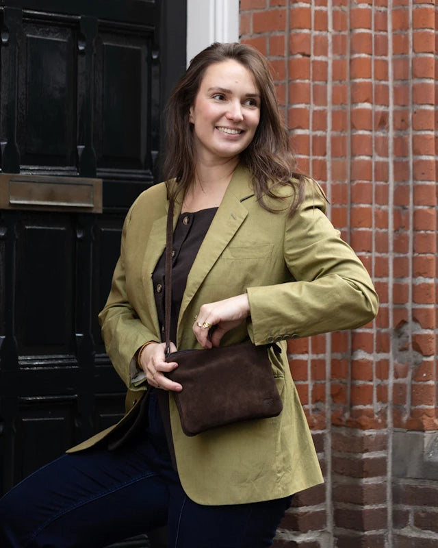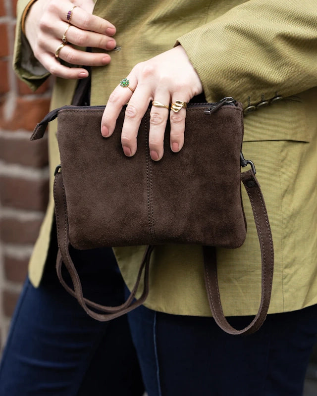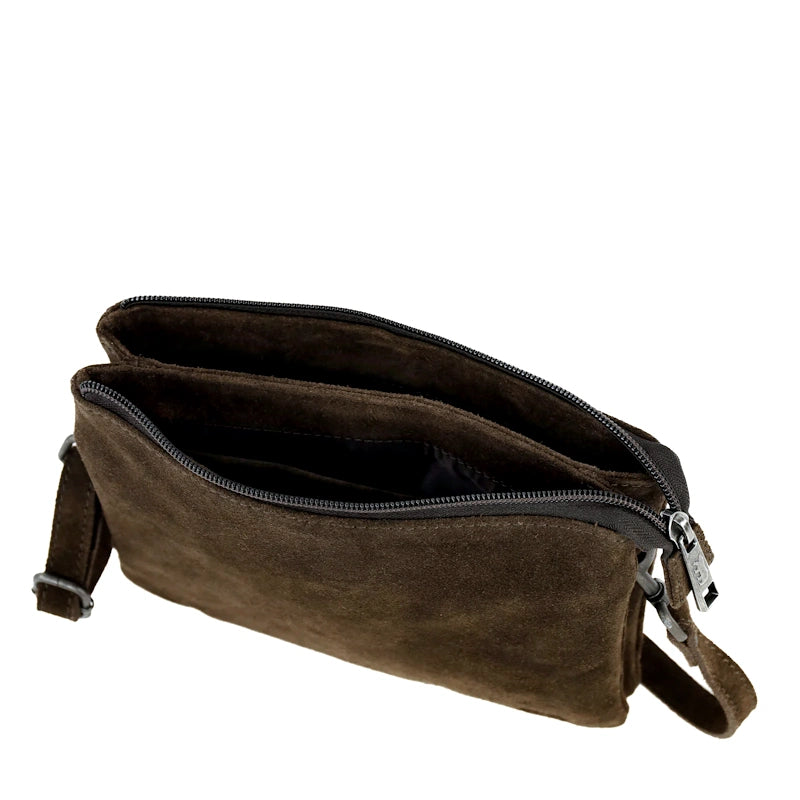 De Marthe is een sportieve en elegante crossover tas uit de Suède serie van Bear Design. De tas kan worden afgesloten met een ritssluiting en heeft twee brede vakken onder deze rits Aan de binnenzijde bevinden zich nog een insteekvak en een ritsvak om bv je portemonnee veilig in op te bergen. De tas heeft een lange schouderband die in lengte verstelbaar is.