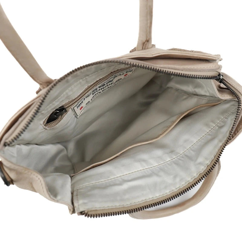 De Handtas / Schoudertas Bonnie is een de kleinere zusje van de Bonnie XL en komt uit de Callisto Pelle serie van Bear Design . De tas heeft een hoofdvak dat kan worden afgesloten met een rits en heeft tevens een achter rits. De schoudertas heeft een lange in lengte verstelbare en afneembare schouderband om de tas crossbody of over een schouder te dragen. De tas kan aan de arm of in de hand worden gedragen middels de dubbele handgrepen maar kan ook crossbody gedragen worden middels de lange (afneembare) en in lengte verstelbare schouderband. De tas is gemaakt van soepel gelooid Italiaans rundleer.
