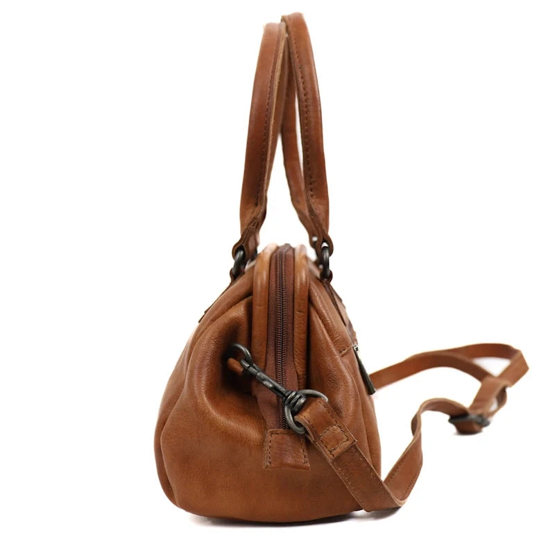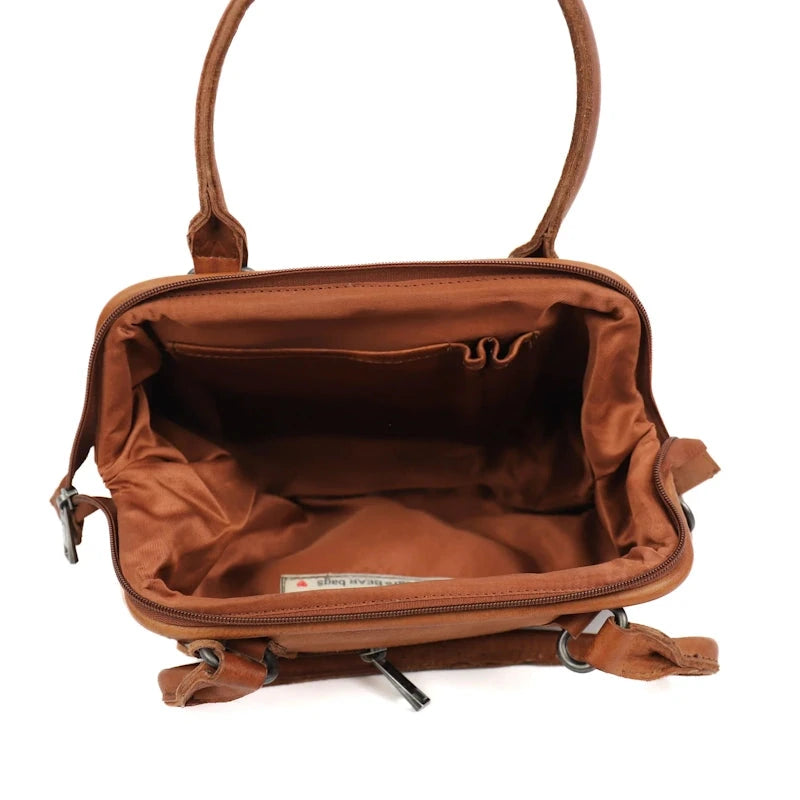 De Ines M is een stoere, elegante damestas uit de Callisto Pelle serie van Bear Design. De tas heeft een beugelsluiting met een ris waardoor bij opening er een wijde opening ontstaat. Aan de binnenzijde bevinden zich nog een insteekvak voor bv je telefoon en een ritsvak om bv je portemonnee veilig in op te bergen. Middels de twee korte schouderbanden kan de tas in de hand, aan de arm of kort op de schouder worden gedragen en met de lange, afneembare en in lengte verstelbare schouderband kan de tas crossbody of op een schouder worden dragen. De tas is gemaakt van heel soepel gelooid Italiaans rundleer.