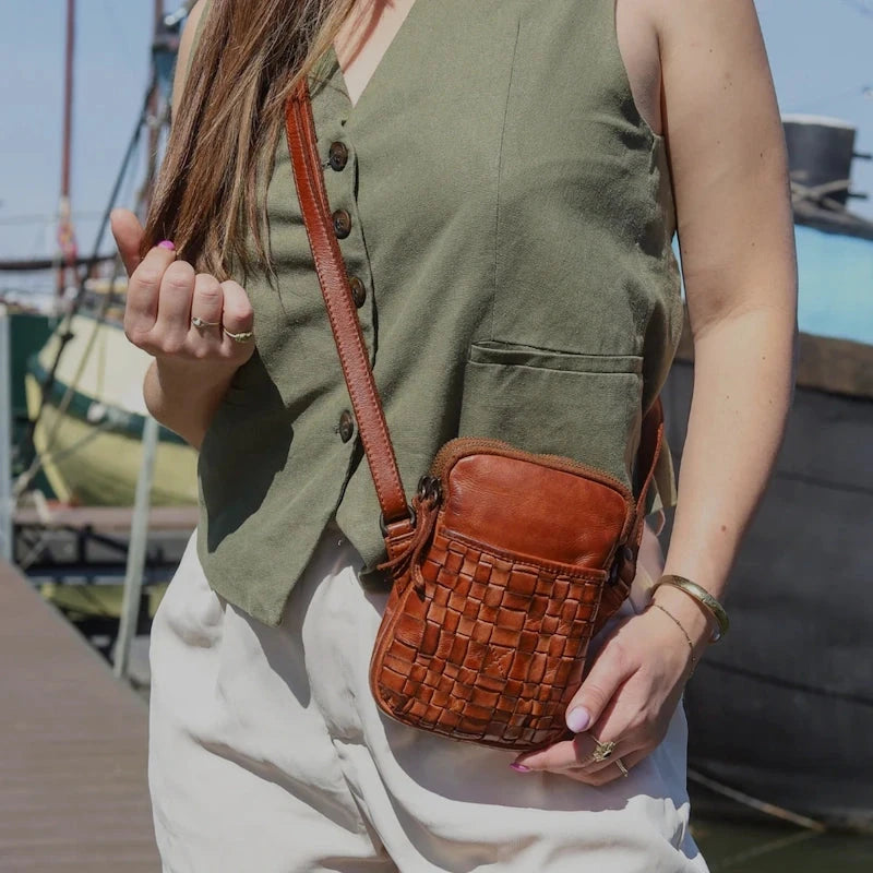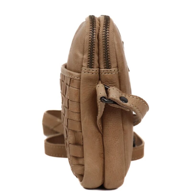 Shoulderbag Saske is een mooie schoudertas met een gevlochten voorzijde uit de Cow Lavato serie van Bear Design. Deze tas heeft twee hoofdvakken die kunnen worden afgesloten met ritsen.. De tas heeft aan de voor- en aan de achterzijde een ritsvak. Aan de binnenzijde bevindt zich een insteekvak voor bv je telefoon en een ritsvak om bv je portemonnee veilig in op te bergen. Deze tas heeft een lange in lengte verstelbare schouderband om crossbody of over een schouder te dragen. De tas is gemaakt van heel mooi en soepel gelooid rundleer.