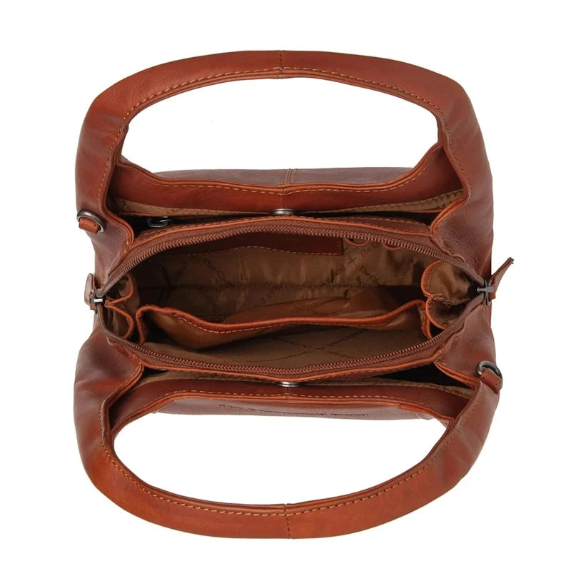 De Lunera is een mooie en functionele handtas van Chesterfield Brand. De tas is gemaakt van hoogwaardig rundleer, is met de handgemaakt en gewaxt. Doordat het leer een natuurproduct kunnen alle stukken niet gelijk zijn en het leer kan de wax verschillend opnemen, hierdoor is elke tas uniek. Het leer van de tas is soepel en voelt goed aan. Chesterfield logo is mooi verwerkt in leer De tas heeft een handige vak- indeling met een divider in het midden met hiernaast twee ruime steekvakken. De tas is afsluitbaar met een stevige ritssluiting. Door deze vak indeling kunt u gemakkelijk uw spullen gescheiden houden. Aan de binnenzijde bevindt zich een binnenvak met ritssluiting, vier creditcardvakjes, twee pennenlussen en een smartphone vakje. U kunt de tas dragen met de 2 handvatten, waarmee je de tas in de hand of aan de arm kunt dragen. Met behulp van de lange, afneembare schouderband kan de Lunera op de schouder of crossover gedragen worden.
