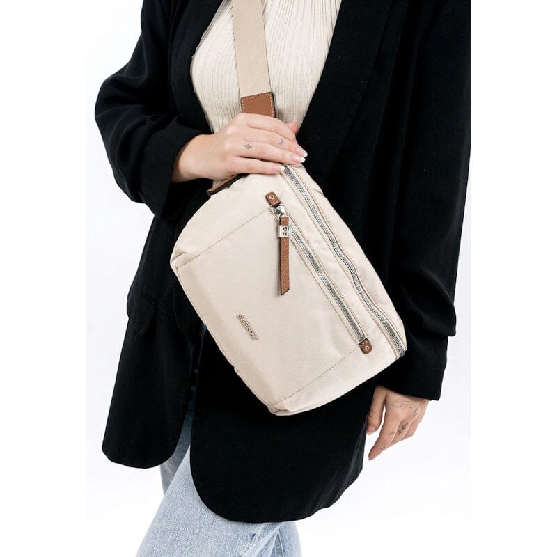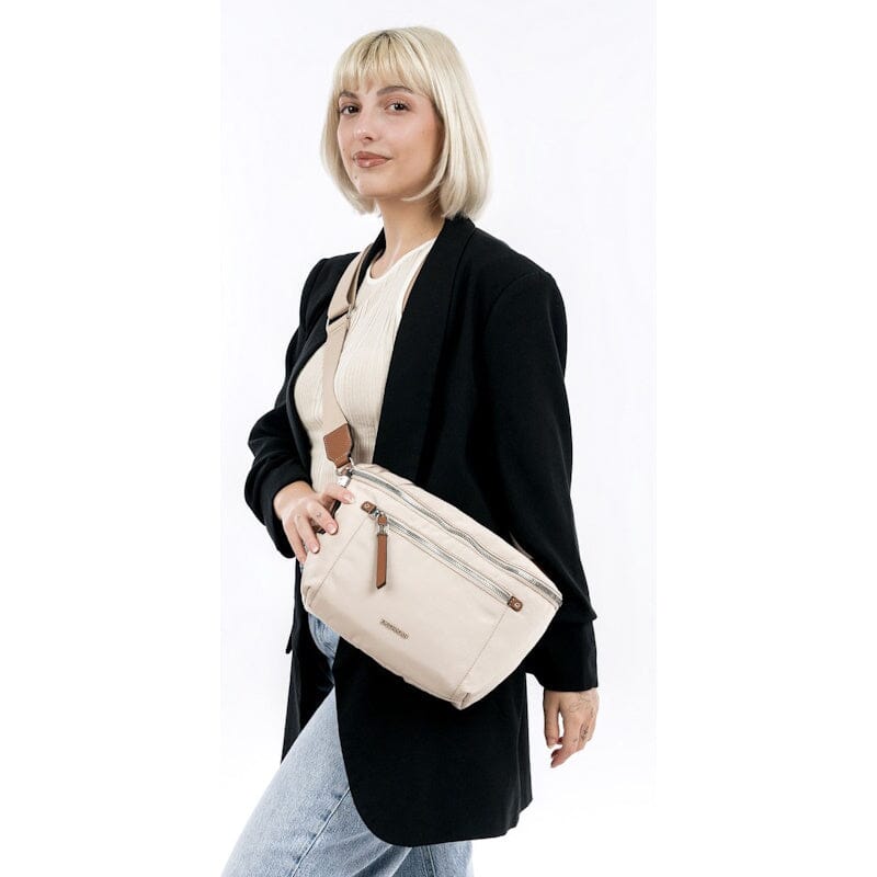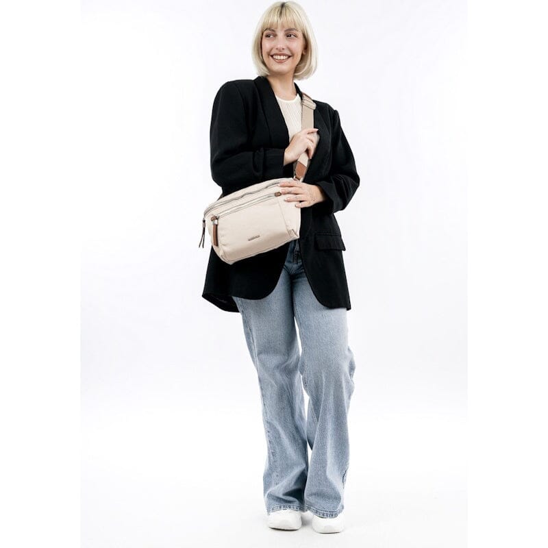 Deze mooie crossover tas uit de Esther collectie van Emily & Noah is gemaakt van Vegan Proof nylon, kun je dragen met een lange schouderband die je in lengte kunt verstellen. De tas heeft een ruim hoofdvak die afgesloten kan worden met een ritssluiting. Aan de binnenzijde bevindt zich een rits- en een telefoonvak. Aan de voorzijde bevinden zich twee ritsvakken terwijl er aan de achterzijde ook een ritsvak zit.