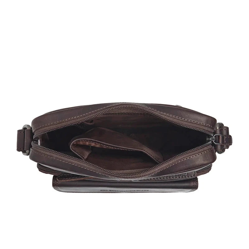De Montira van The Chesterfield Brand is een praktisch en functionele schoudertas voor mannen.. Deze Chesterfield tas heeft twee voorvakken, een met rits en een die afgesloten kan worden met een klep met magneetsluiting. Er bevindt zich een ritsvak aan de achterkant. De schoudertas heeft een hoofdvak dat kan worden afgesloten met een rits. Het interieur is voorzien van een ritsvak en een telefoonvak. Door de lange en in lengte verstelbare schouderband kan de tas crossbody of op de schouders gedragen worden.