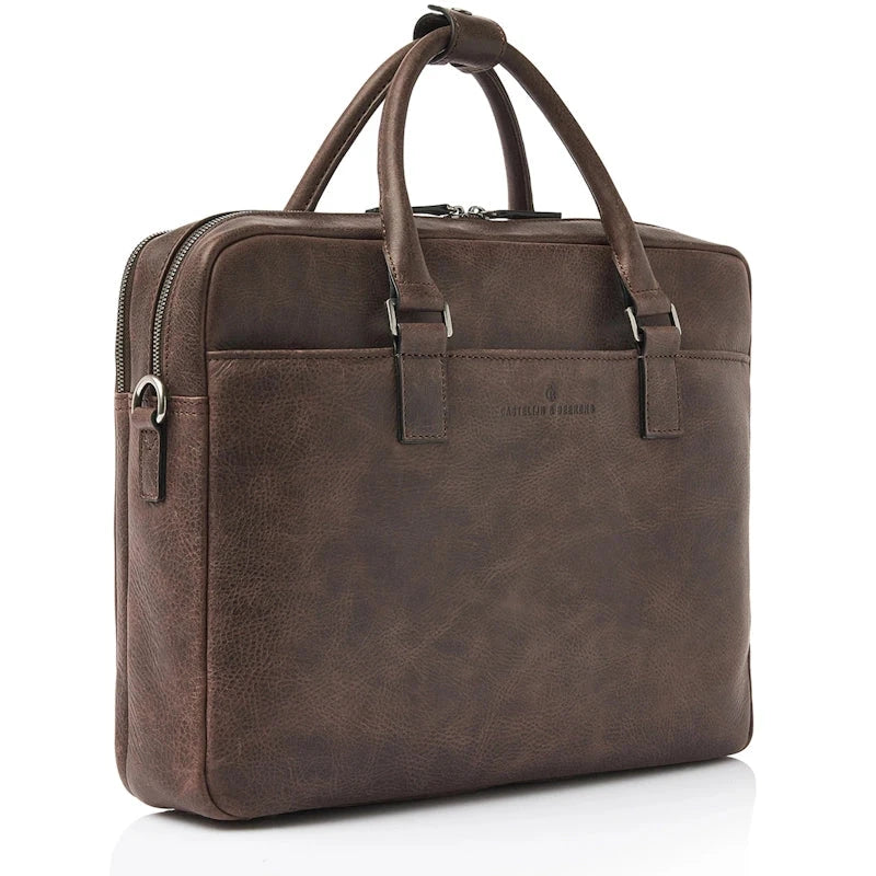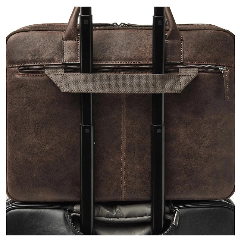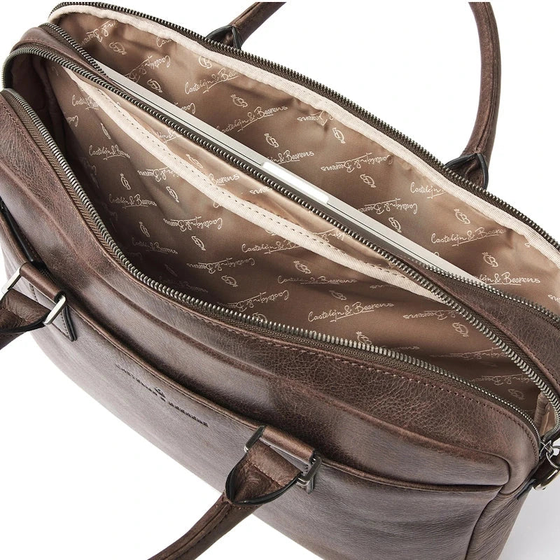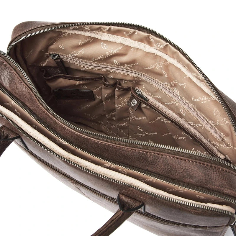 Deze functionele laptoptas is verdeeld in twee hoofdcompartimenten, waarvan er een is uitgerust met een verstevigd 15,6" laptopvak en tabletvak. Daarnaast heeft de leren businesstas diverse rits- en steekvakken voor persoonlijke benodigdheden en documenten. De laptoptas is voorzien van een afneembare en verstelbare leren schouderriem. Verder biedt de trolley-band uitkomst als u de tas mee op reis neemt. Duurzaam bovendien, het Italiaanse leer is duurzaam gelooid volgens richtlijnen van de Leather Working Group. Door de zichtbare natuurlijke nerf in het leer, oogt de Carisma collectie stoer en robuust.