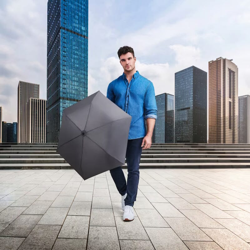 Dankzij het extreem vlakke formaat en de geselecteerde materialen is de US.050 uitgegroeid tot de lichtste zakparaplu in het assortiment. Naast het compacte formaat in gesloten toestand, heeft de paraplu slechts een gewicht van 115 g, waardoor deze lichter is dan een smartphone. Door zijn slanke afmetingen is het de ideale reisgenoot en kan de paraplu zelfs in elke jaszak worden opgeborgen. Ondanks de compacte afmetingen hoeft er echter niet op stabiliteit of kwaliteit worden ingeboet. De zakparaplu US.050 kan ook worden gebruikt bij winderig weer. Deze doorstaat windsnelheden tot 100 km/h zonder schade op te lopen. Dit wordt bereikt door de uiterst flexibele baleinen, waardoor het scherm zelfs kan omklappen zonder dat het beschadigt.
