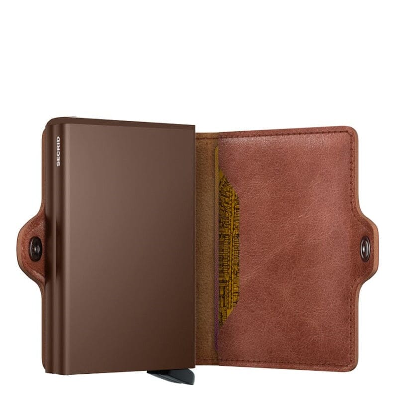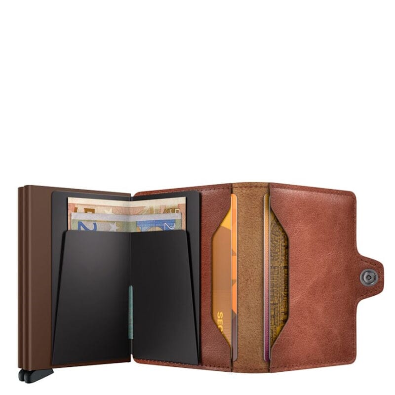 De Secrid lederen Wallet collectie is het resultaat van vakmanschap en verfijnd handwerk op het hoogste niveau. Er is gebruik gemaakt van Amazon leer wat in Nederland is ontwikkeld en op een speciale manier wordt de print gedrukt. De Secrid Twinwallet bestaat uit twee Secrid Cardprotectors in een leren hoes met druksluiting. Hierdoor kunnen 8 tot 12 kaarten beveiligd worden meegenomen. De Twinwallet is de helft compacter dan een traditionele portemonnee met vergelijkbare inhoud en past goed in een kleine damestas of in een broekzak. Belangrijkste passen zijn optimaal beschermt, zowel tegen buigen en breken als tegen ongewenst uitlezen van RFID-kaarten (zoals de OV-chipkaart, ID-kaart, de nieuwste creditcards en bedrijfspasjes). Dankzij het unieke, Red Dot Design Award winnende, ontwerp schuiven de kaarten trapsgewijs naar buiten voor een eenvoudige selectie. Het binnenwerk biedt daarnaast ruimte voor extra kaarten, papiergeld, bonnetjes, visitekaartjes en muntgeld. De Secrid Twinwallet is ook leuk om als cadeau te geven, want hij wordt geleverd in een mooie verpakking.