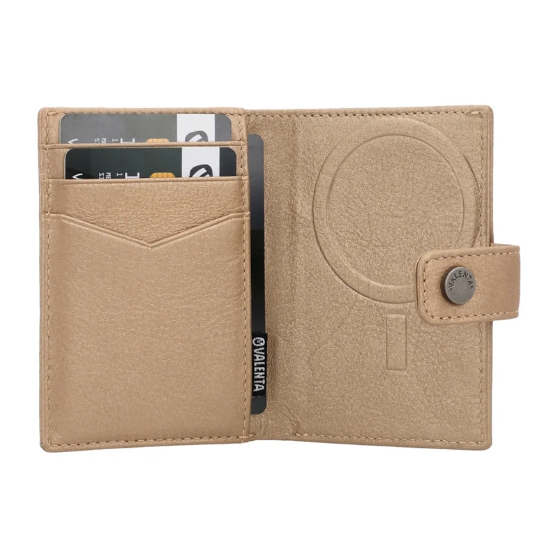 Valenta Card Wallet Leather MagSafe Luxe Metallic Sand