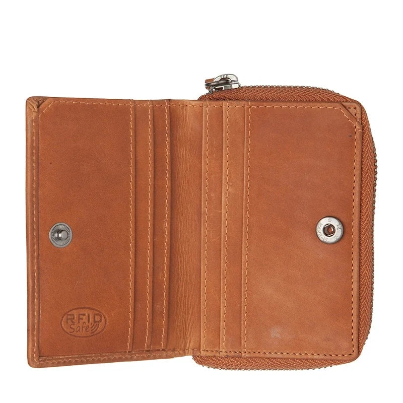 Deze compacte portemonnee van The Chesterfield Brand is gemaakt van gewaxt rundleder en is zeer functioneel. Deze damesbeurs bestaat uit twee delen: een vak met rits voor muntgeld en een vak met klep met druksluiting waar plaats is voor 6 creditcards. Er is een steekvak voor papiergeld. De portemonnee heeft RFID protectie, door de RFID protectie kunnen uw pasjes niet uitgelezen worden. Dit is tegenwoordig onmisbaar nu contactloos betalen een belangrijk onderdeel is van onze betaalmethode.