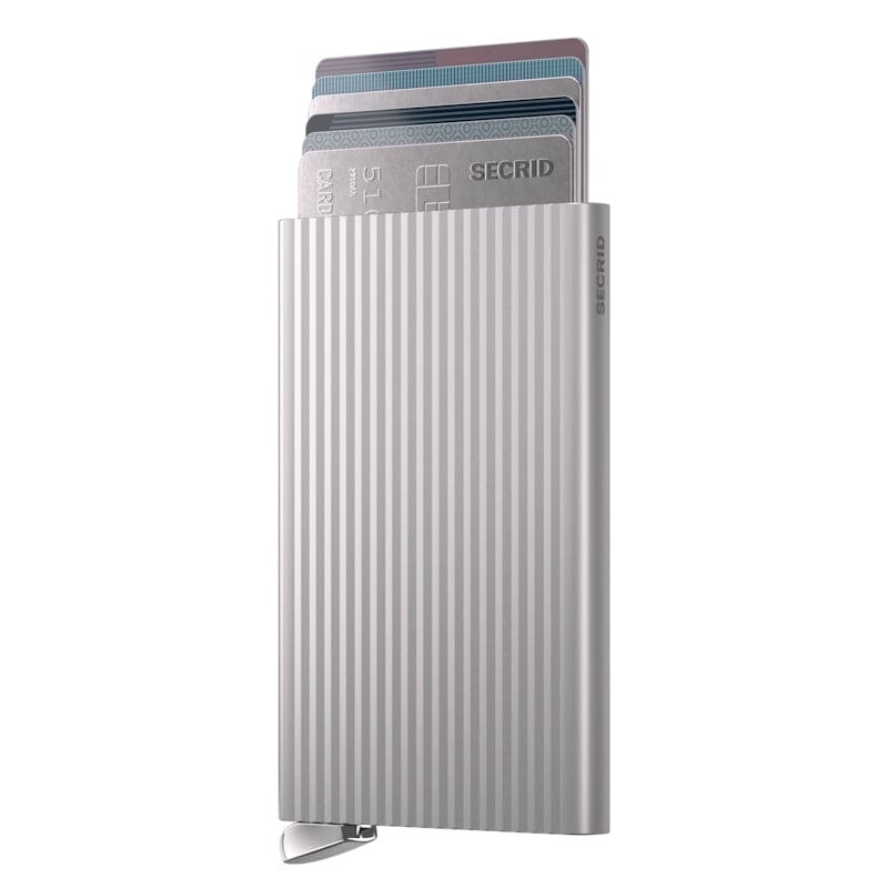De Cardprotector is de meest minimalistische wallet en tevens de kern van de Secrid productenlijn. Het gepatenteerde Nederlandse ontwerp maakt het mogelijk om met een beweging alle kaarten trapsgewijs uit te schuiven. De aluminium Cardprotector beschermt uw belangrijkste kaarten optimaal, zowel tegen buigen en breken als tegen het ongewenst uitlezen van RFID-kaarten (zoals de OV-chipkaart, ID-kaart, de nieuwste creditcards en bedrijfspasjes). Sommige kaarten hebben verdikte letters, dit heet embossing. In de Cardprotector bergt u maximaal zes kaarten op, waarvan één met embossing. Of maximaal vijf kaarten, waarvan drie met embossing. De Secrid Cardprotector is slechts 8 mm dik en is bekroond met een Red Dot Design Award.