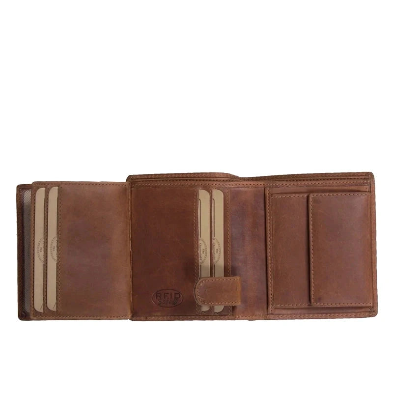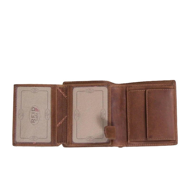 Deze portemonnee uit de Carl collectie van Chesterfield Brand combineert veiligheid en functionaliteit met RFID-bescherming om ongewenst scannen van creditcardgegevens te voorkomen. Binnenin zijn er acht kaartvakken waarvan twee transparant zijn, een vak voor papiergeld en een muntvak.