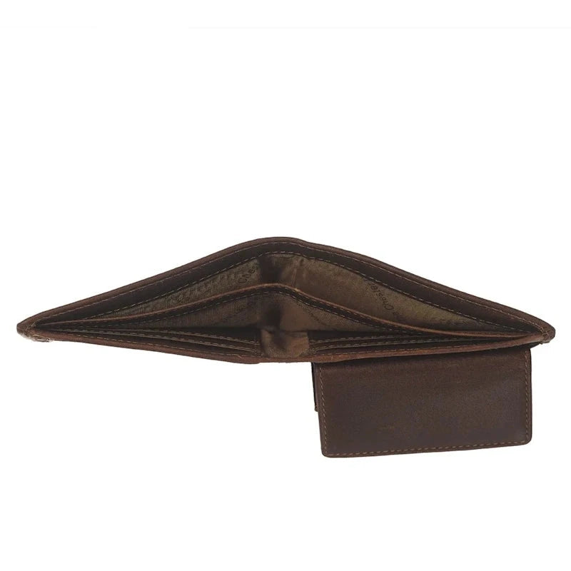 Deze portemonnee uit de Enzo collectie van The Chesterfield Brand combineert veiligheid en functionaliteit met RFID-bescherming om ongewenst scannen van creditcardgegevens te voorkomen. Binnenin zijn er twee kaartvakken, een extra insteekvak, twee vakken voor papiergeld en een muntvak.