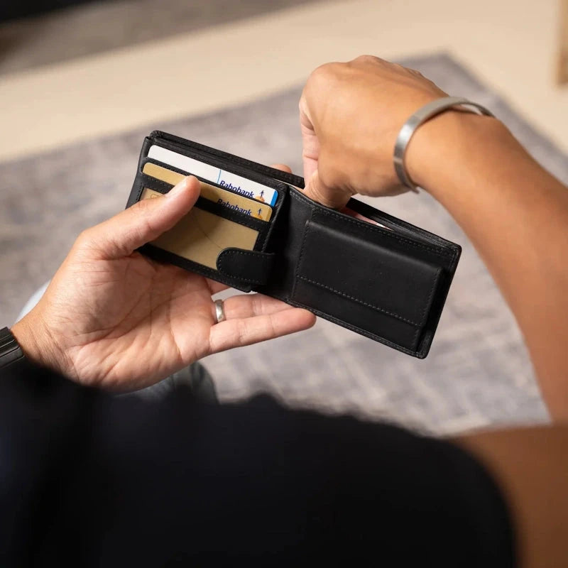 Deze portemonnee uit de Marvin collectie van Chesterfield Brand combineert veiligheid en functionaliteit met RFID-bescherming om ongewenst scannen van creditcardgegevens te voorkomen. Binnenin zijn er acht kaartvakken waarvan twee transparant zijn, een vak voor papiergeld en een muntvak.