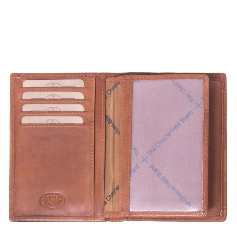 Deze hoge billfold uit de Siem collectie van The Chesterfield Brand combineert veiligheid en functionaliteit met RFID-bescherming om ongewenst scannen van creditcardgegevens te voorkomen. Binnenin zijn er zes kaartvakken, 3 extra insteekvakken, een transparantvak voor bv een foto of het rijbewijs, twee vakken voor papiergeld en een muntvak.
