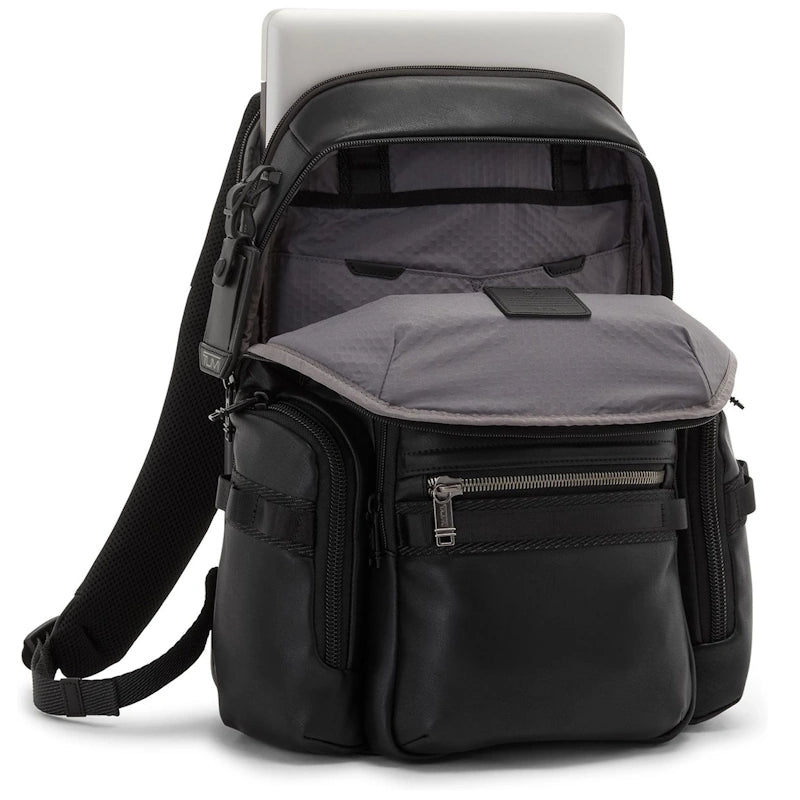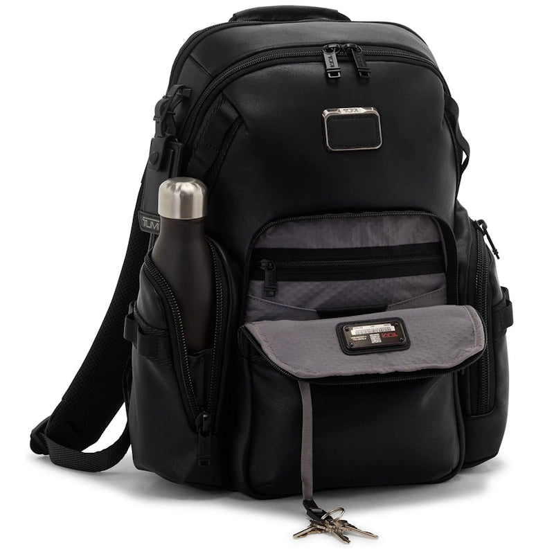 Deze uitvoering van de Alpha Bravo Navigation rugzak van Tumi is gemaakt hoogwaardig volnerf kwaliteitsleer. De iconische zaken- en reisartikelen van Tumi combineren een innovatief ontwerp, superieure prestaties en de beste functionaliteit in hun klasse. Aan de achterzijde bevindt zich een Smart Sleeve waarmee de tas op het trolleysysteem van een trolley kan worden bevestigd.