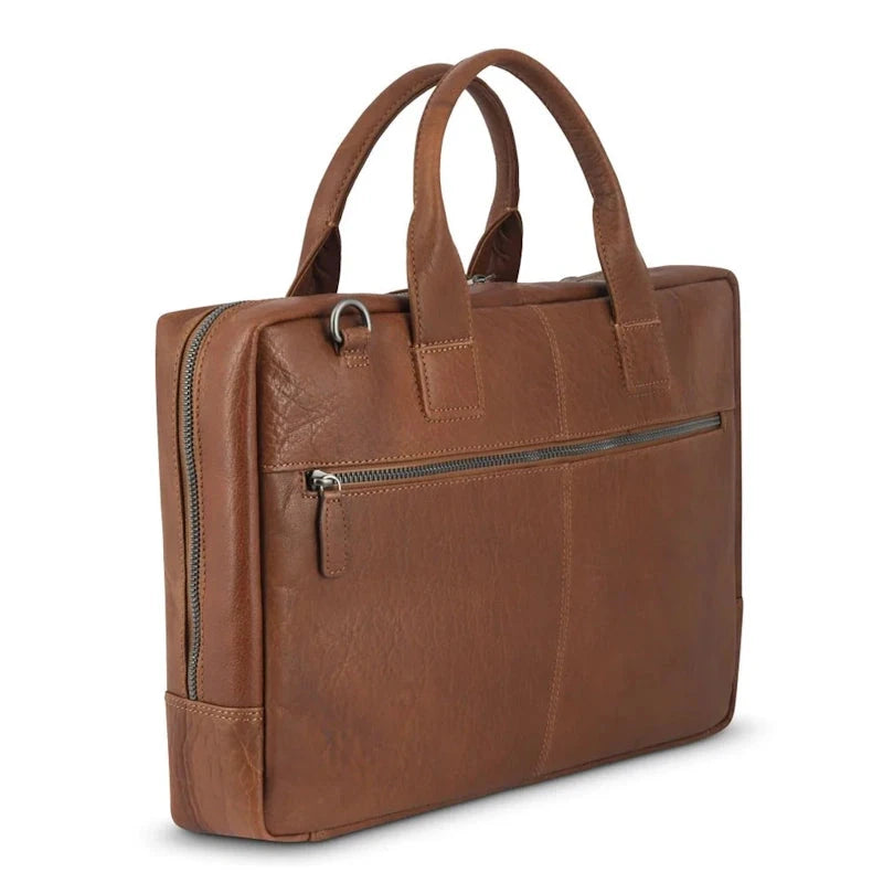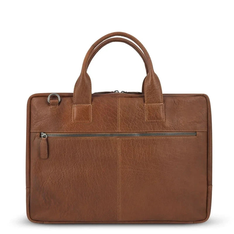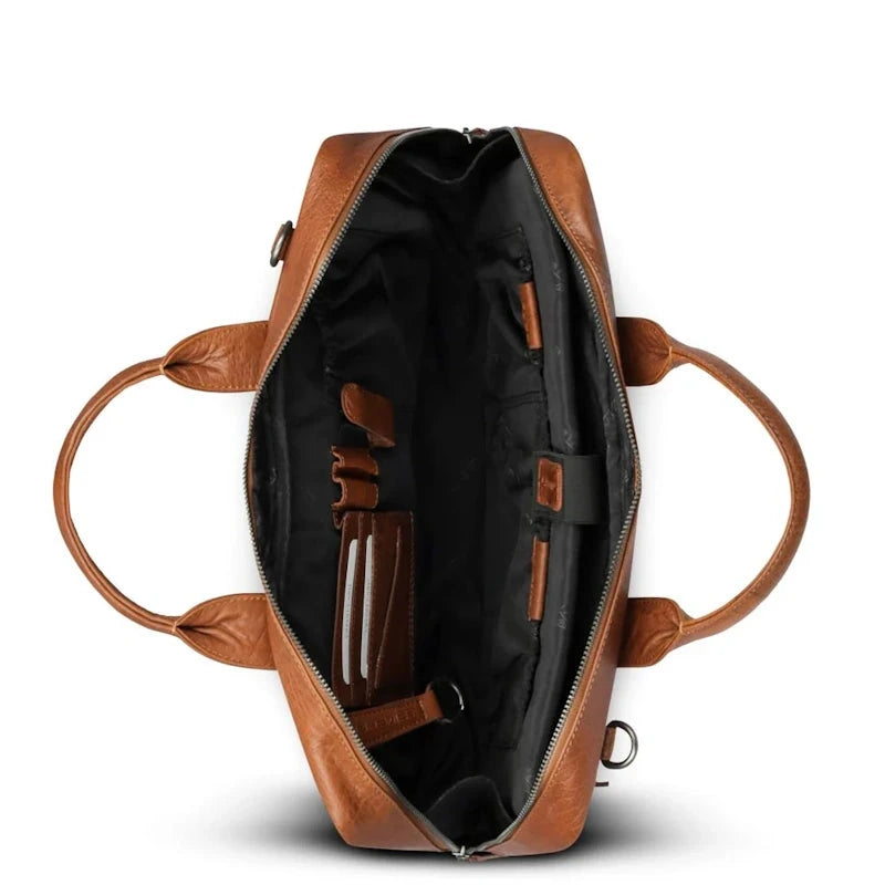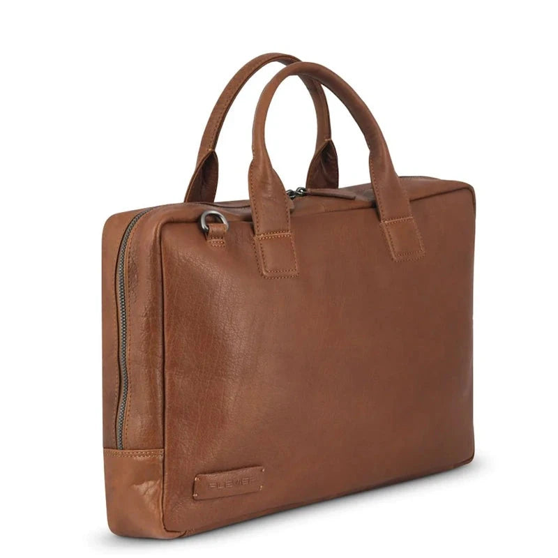 Deze volnerf plantaardig gelooide en gewaxte leren business tas is geschikt voor een 14-16 inch laptop. De binnenkant is mooi uitgewerkt met een afsluitbaar gewatteerd laptop vak en er zijn Plevier® multifunctional pockets voor mobiele telefoon, pennen, usb stick, visitekaartjes, RFID pocket voor kaart bescherming, optische muis, adapter, bekabeling en een afneembare Plevier® sleutelhanger. Aan de achterkant zit een ritsvak. Een schouderband met een comfortabele schouderpad wordt meegeleverd.
