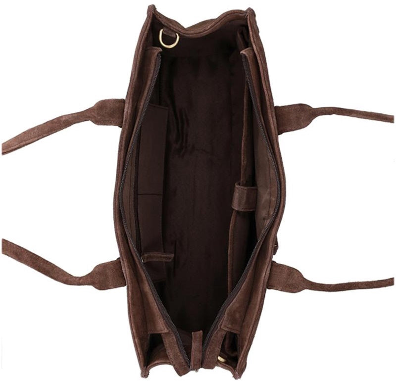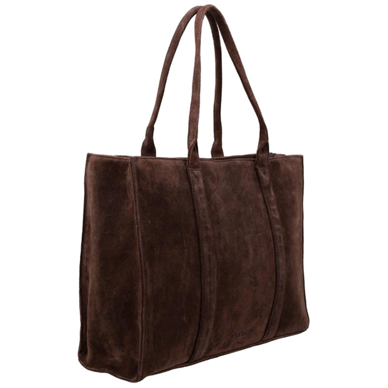 De Shopper Laptoptas uit de Preston Park collectie van het Nederlandse merk DSTRCT is gemaakt van soepel kwaliteits suède en heeft twee draagbanden waarmee de tas in de hand of over de schouder gedragen kan worden. Bij de tas wordt een afneembare lange, verstelbare schouderband meegeleverd waarmee je deze tas op de door jou gewenste lengte over de schouder kunt dragen of schuin over het lichaam kunt dragen (crossbody). Het hoofdvak van de tas is afsluitbaar met een stevige ritssluiting. Binnenin zit een twee steekvakken voor bijv. je telefoon, een gewatteerd laptopvak voor een laptop tot 15,6" en een ritsvak om waardevolle essentiels achter op te bergen zoals je sleutels of portemonnee.