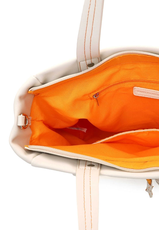 Deze tas is niet alleen mooi van buiten, maar ook superhandig van binnen. De ritssluiting aan de bovenzijde zorgt voor een veilige toegang tot je spullen, terwijl je in het interieur een ritsvak en een steekvak vindt voor al je essentials. Alles wat je nodig hebt, heeft zijn eigen plekje, en dat maakt het leven gewoon een stuk makkelijker. Met de lange, afneembare en verstelbare schouderband kun je de tas gemakkelijk op de schouder of crossbody dragen. Met de hengsels kun je de tas in de hand. aan de arm of kort op de schouder dragen.