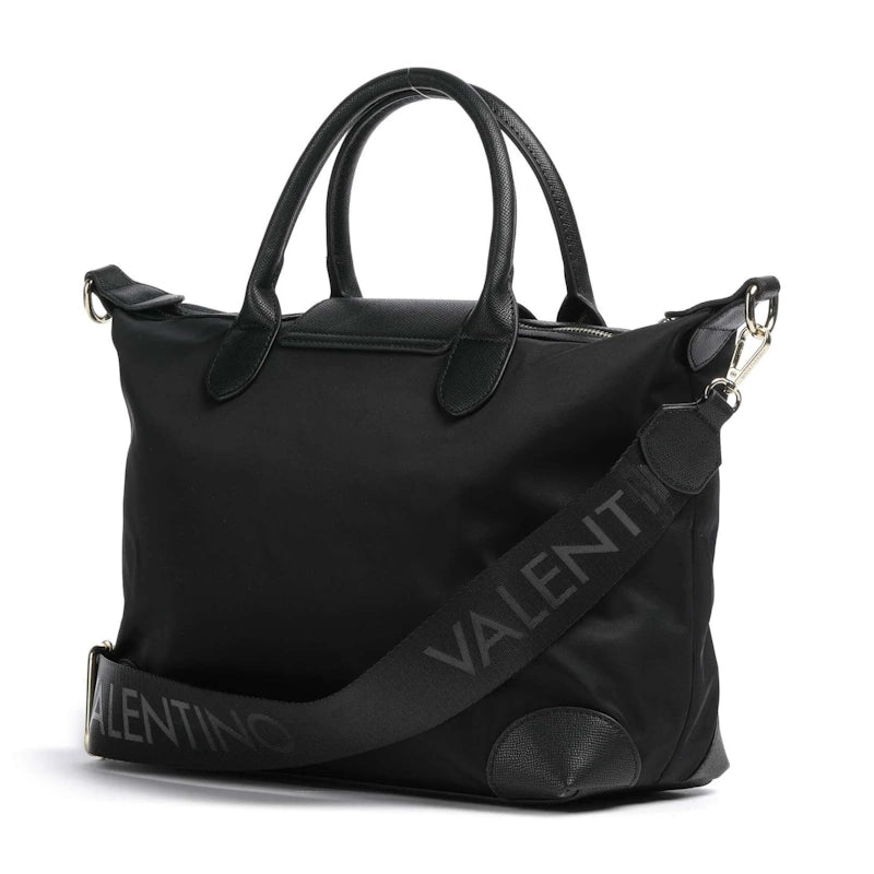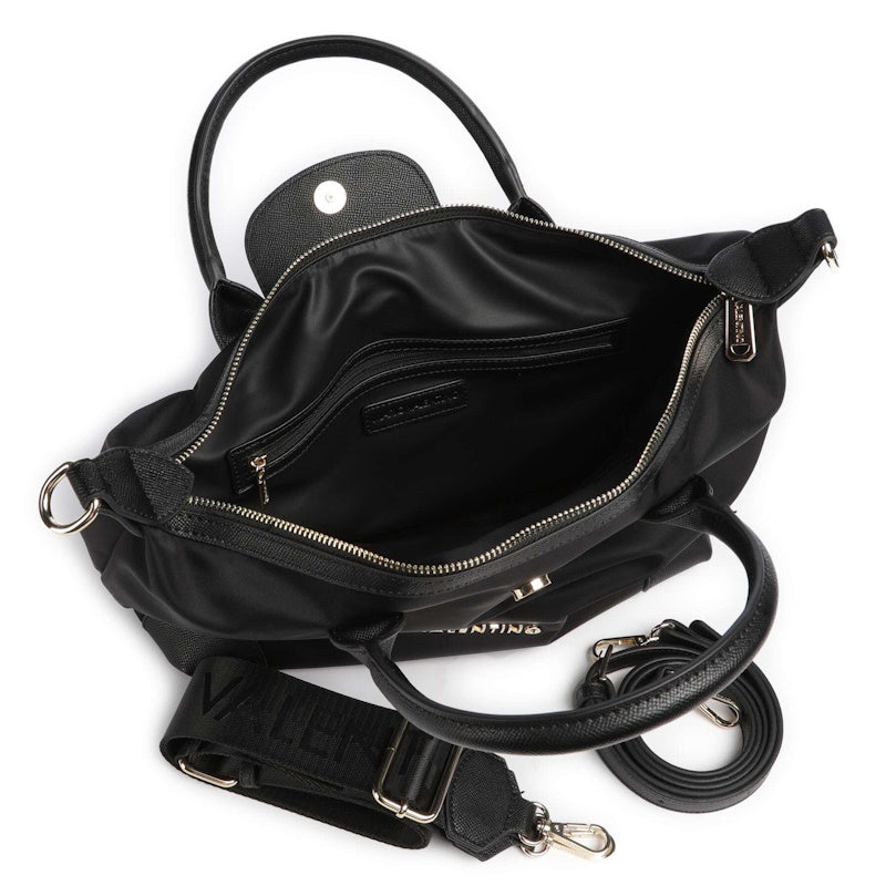 Deze mooie handtas uit de Jolly Re collectie van Valentino is gemaakt van nylon en leatherlook PU. De tas heeft dubbel handgrepen om de tas aan de arm of in de hand te dragen. Ook wordt er een lange en in lengte verstelbare schouderband meegeleverd om de tas op de schouder of crossover te kunnen dragen. De tas sluit met een ritssluiting aan de bovenzijde terwijl zich aan de binnenzijde een ritsvakje en een insteekvak bevinden.