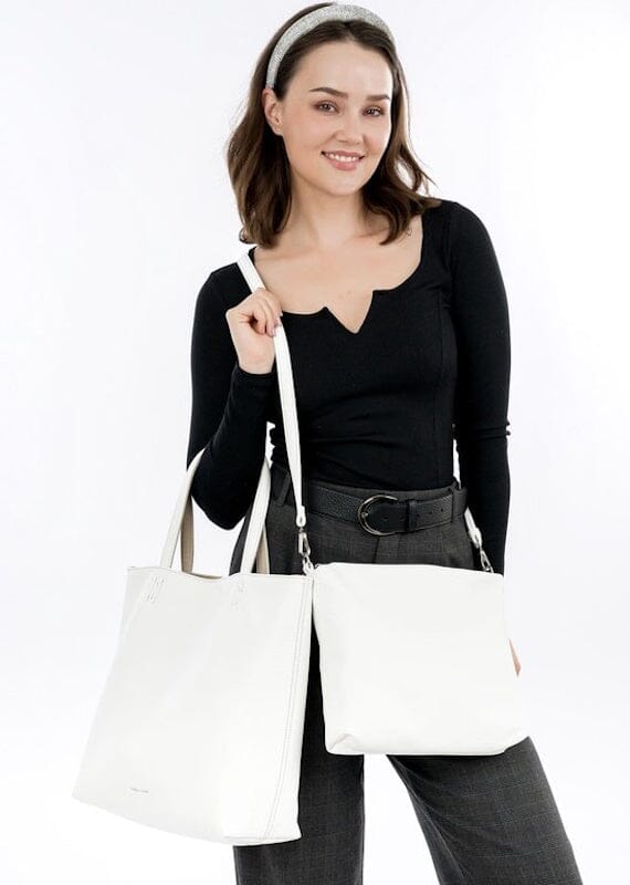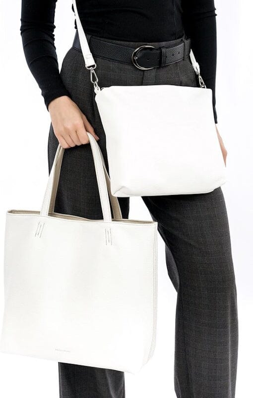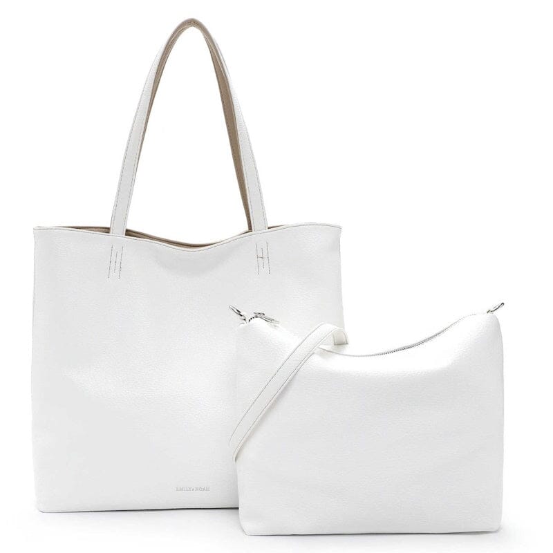 De BaginBag Reversible Shopper uit de Eva collectie van Emily & Noah is een prachtige ruime shopper gemaakt van lichtgewicht en soepel leatherlook PU die aan de binnenzijde ook nog een uitneembare extra tas heeft. De hoofdtas heeft twee hengels waarmee de tas aan de hand, arm of over de schouder gedragen kan worden. De hoofdtas is reversible wat inhoud dat de kleur van de binnenzijde de buitenzijde wordt en andersom. De shopper heeft aan de binnenzijde een extra tas die uitneembaar is en ook apart te gebruiken. Deze extra tas kan worden afgesloten met een ritssluiting en heeft aan de binnenzijde een rits- en telefoonvakje. Middels de meegeleverde lange schouderband kan de extra tas over een schouder of crossbody gedragen worden. Wat veel mogelijkheden om deze tas te gebruiken!