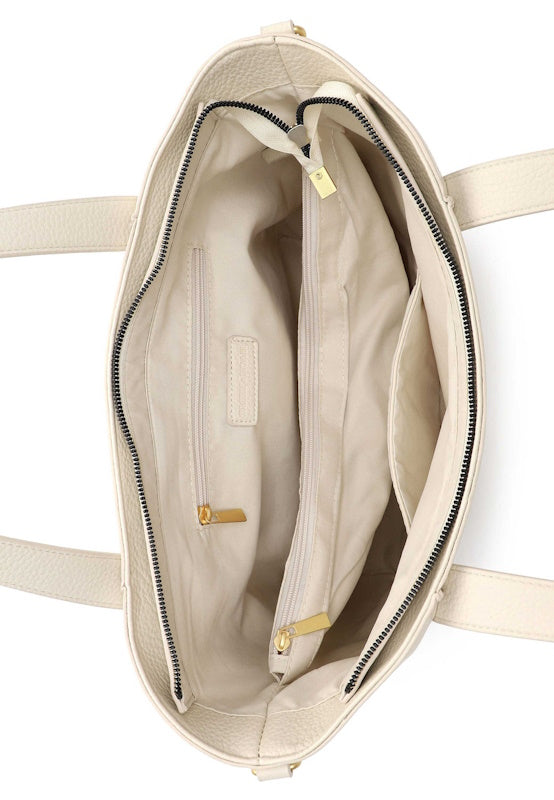 Deze mooie shopper uit de Julie collectie van Emily & Noah is gemaakt van Vegan Proof Leatherlook PU, kun je dragen met een lange schouderband die je in lengte kunt verstellen. Maar de tas heeft ook een korte hengsels waarmee je deze prachtige handtas in de hand, aan de arm of kort op de schouders kunt dragen. De tas heeft een ruim hoofdvak die afgesloten kan worden met een ritssluiting. Het hoofdvak is verdeeld in twee vakken die worden gescheiden door een breed ritsvak. Aan de binnenzijde bevindt zich een rits- en een telefoonvak.