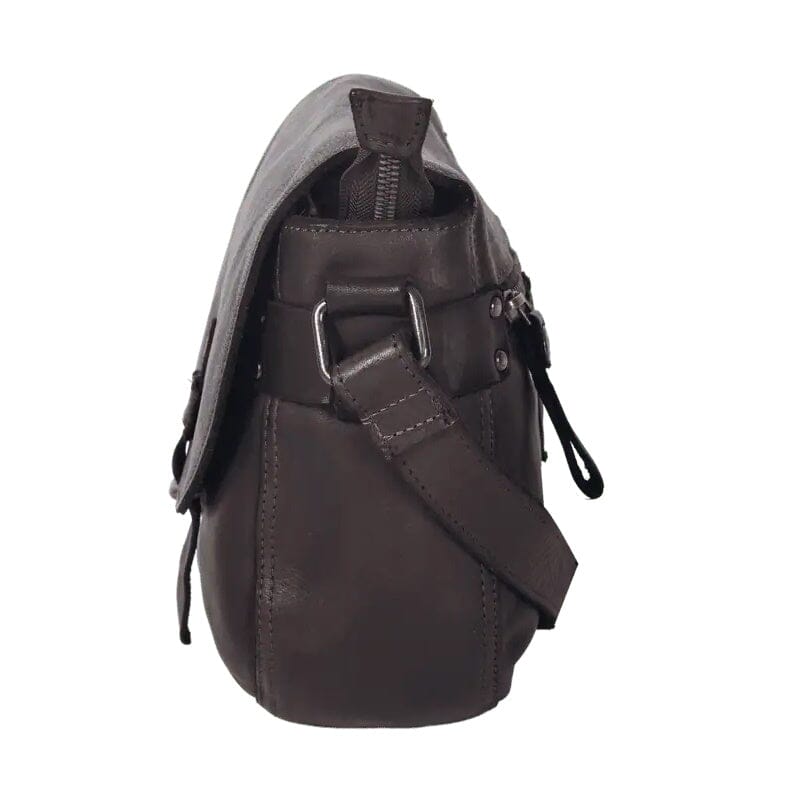 De opvallende klep met leren riem geeft hem een urban touch die elke look complementeert – van zakelijk tot privé.