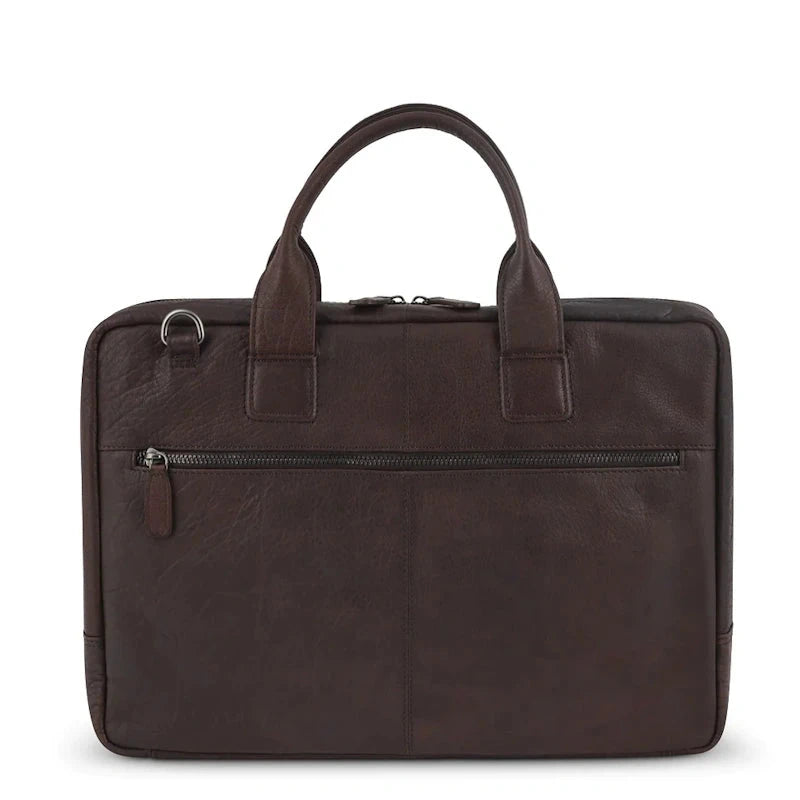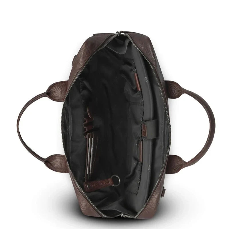 Deze volnerf plantaardig gelooide en gewaxte leren business tas is geschikt voor een 14-16 inch laptop. De binnenkant is mooi uitgewerkt met een afsluitbaar gewatteerd laptop vak en er zijn Plevier® multifunctional pockets voor mobiele telefoon, pennen, usb stick, visitekaartjes, RFID pocket voor kaart bescherming, optische muis, adapter, bekabeling en een afneembare Plevier® sleutelhanger. Aan de achterkant zit een ritsvak. Een schouderband met een comfortabele schouderpad wordt meegeleverd.