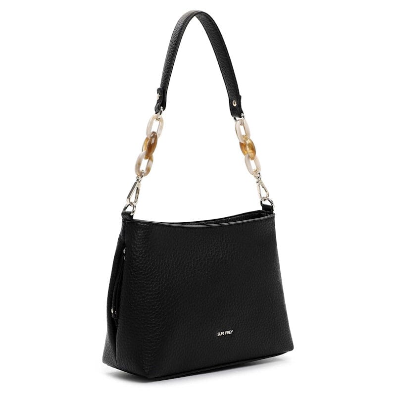 De schoudertas uit de Jeanny collectie van Suri Frey is een modische en multifunctionele tas die is gemaakt van een soepel leatherlook PU dat Vegan proof is volgens de PETA norm. De tas heeft een hoofdvak dat kan worden afgesloten met een rits. Ook zit er een ritsvak aan de achterzijde. Aan de binnenzijde bevinden zich een ritsvak en een breed insteekvak. De tas kan kort op de schouder, in de hand of aan de arm worden gedragen middels de korte (afneembare) schouderband. De lange schouderband is in lengte verstelbaar waardoor de tas zowel crossover als op een schouder gedragen kan worden.