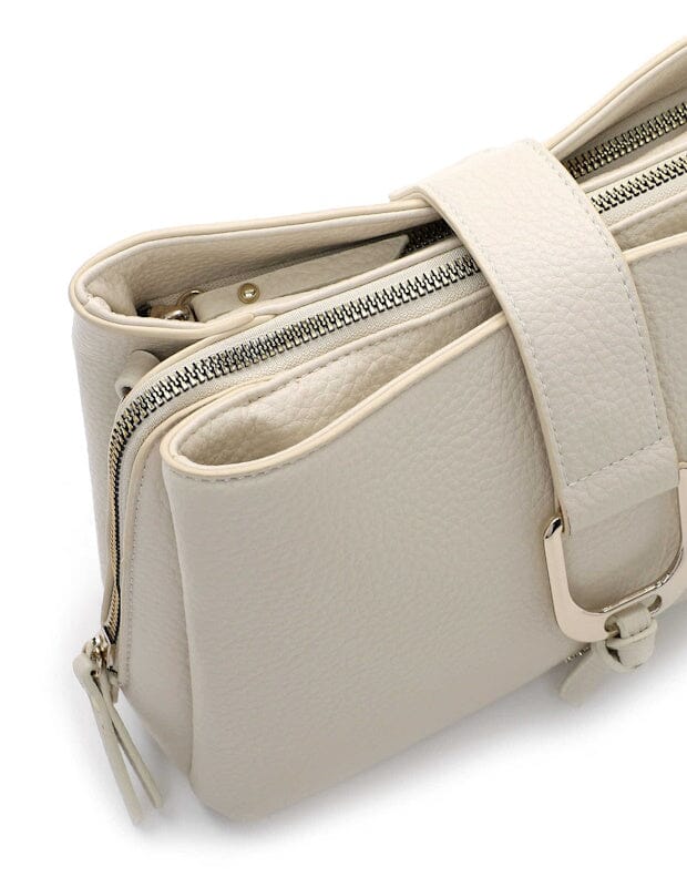 De schoudertas uit de Kelly collectie van Suri Frey is een modische en multifunctionele tas die is gemaakt van een soepel leatherlook PU dat Vegan proof is volgens de PETA norm. De tas heeft een hoofdvak dat kan worden afgesloten met een rits. Aan de zijkanten bevinden zich ook ritsvakken evenals aan de achterzijde. Aan de binnenzijde bevinden zich een ritsvak en een breed insteekvak. De lange schouderband is in lengte verstelbaar waardoor de tas zowel crossover als op een schouder gedragen kan worden.