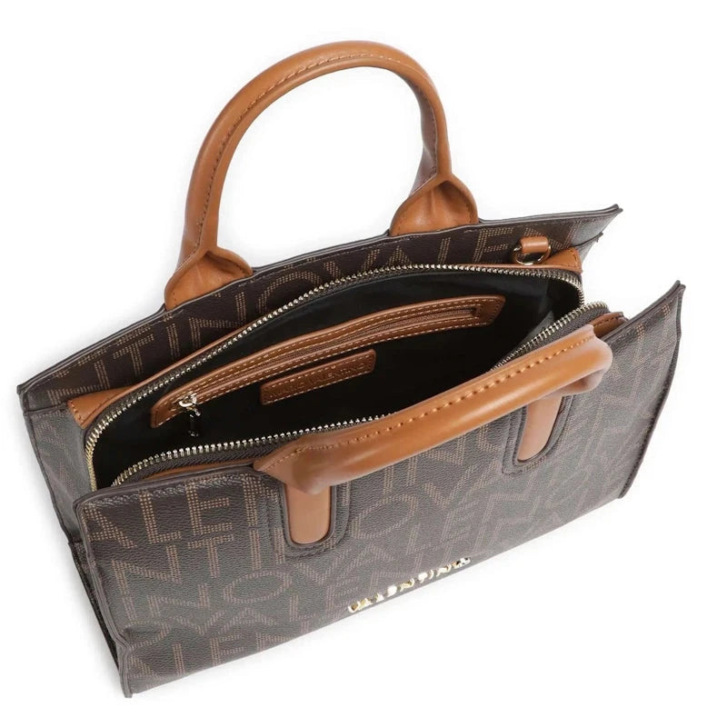 Deze mooie handtas uit de Regina Re collectie van Valentino is gemaakt van leatherlook PU en heeft dubbel handgrepen om de tas aan de arm of in de hand te dragen. Ook wordt er een lange en in lengte verstelbare schouderband meegeleverd om de tas op de schouder of crossover te kunnen dragen. De tas sluit met een ritssluiting aan de bovenzijde terwijl zich aan de binnenzijde een ritsvakje en een insteekvak bevinden.