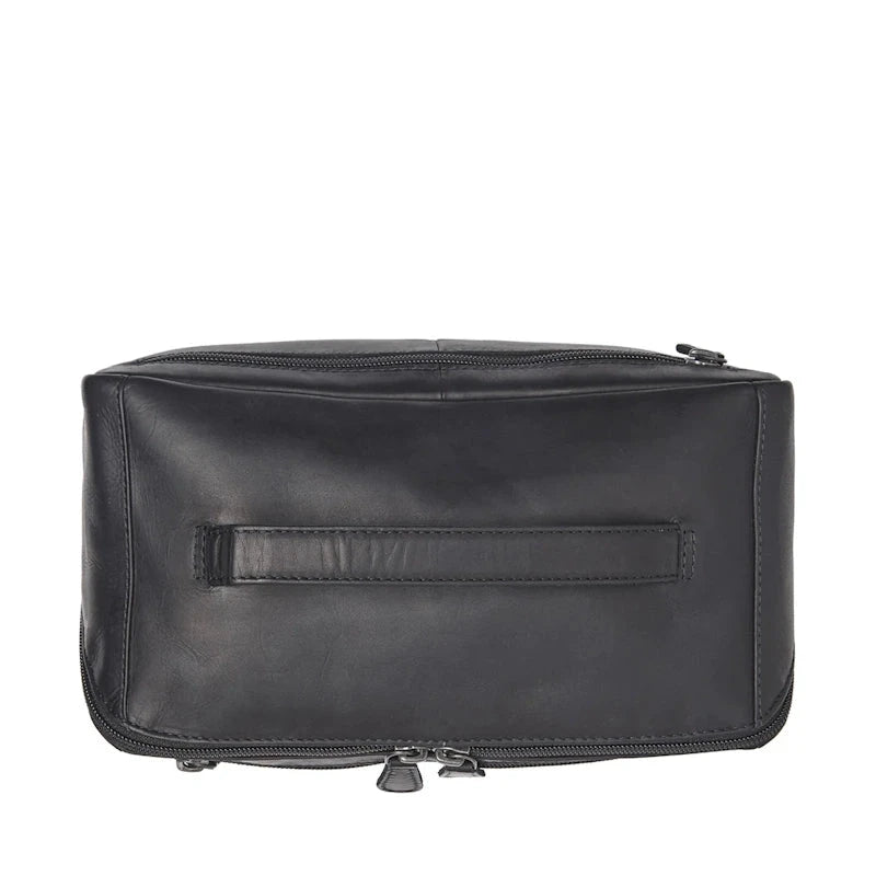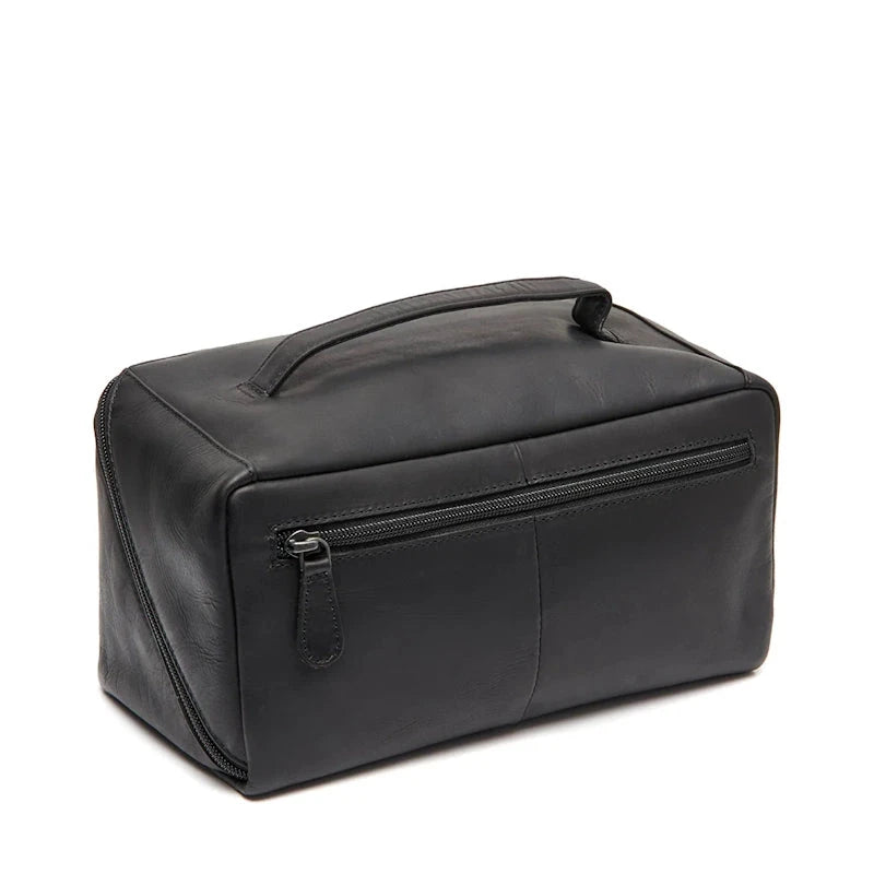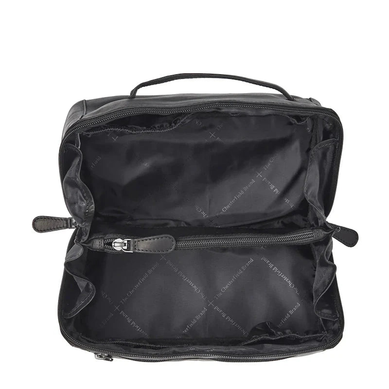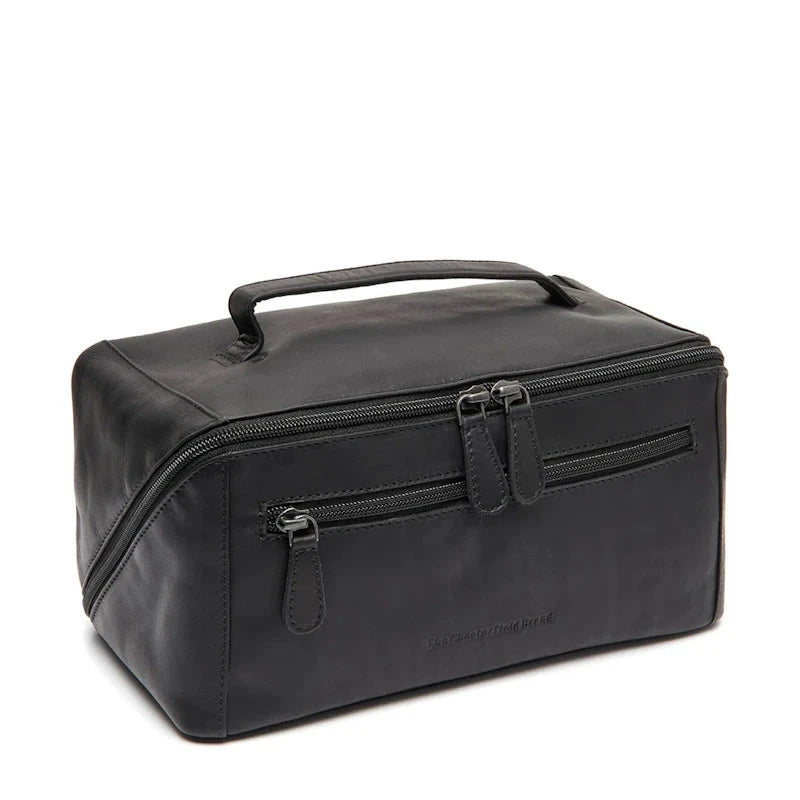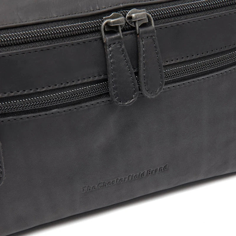 De Elmia van Chesterfield Brand is een ideale toilettas voor mannen of vrouwen om je tandenborstel, scheermesje, deodorant en al je andere toiletspullen mee te kunnen nemen. De tas heeft een ruim hoofdcompartiment die middels een ris kan worden geopend. Het hoofdcompartiment is verdeeld in twee vakken die worden gescheiden door een breed ritsvak. Op de bovenzijde heeft deze toiletbag een leren handgreep.