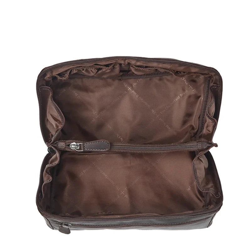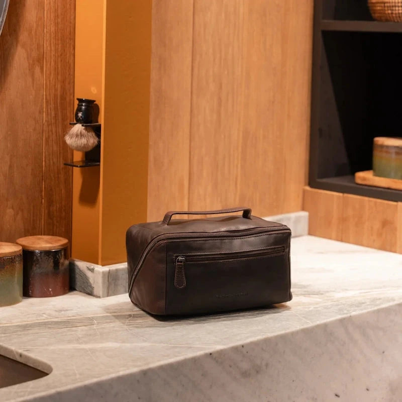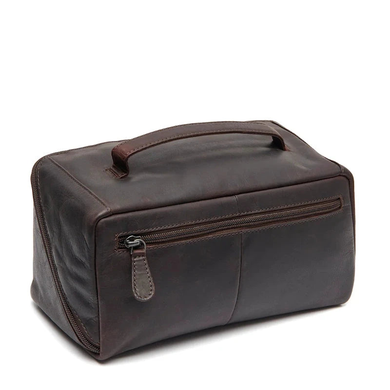 De Elmia van Chesterfield Brand is een ideale toilettas voor mannen of vrouwen om je tandenborstel, scheermesje, deodorant en al je andere toiletspullen mee te kunnen nemen. De tas heeft een ruim hoofdcompartiment die middels een ris kan worden geopend. Het hoofdcompartiment is verdeeld in twee vakken die worden gescheiden door een breed ritsvak. Op de bovenzijde heeft deze toiletbag een leren handgreep.