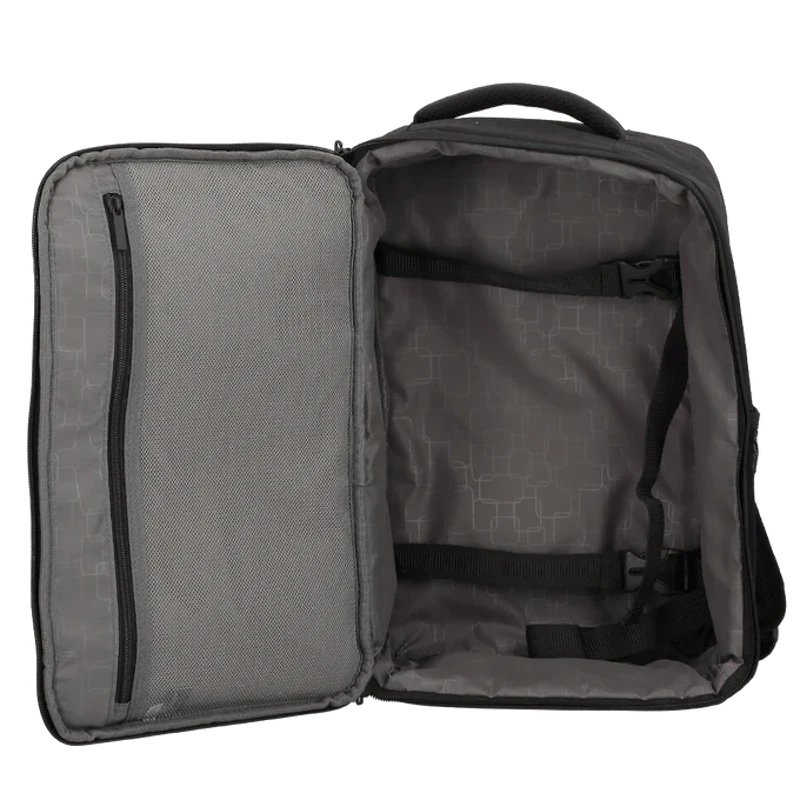 Dankzij het compacte design voldoet de rugzak aan het  kleine handbagageformaat van Rainair. Hierdoor mag de tas met de meeste vliegmaatschappijen mee als handbagage en kan het gemakkelijk onder de vliegtuigstoel worden geschoven.. Het hoofdcompartiment beschikt over een  ritsvak en en de compressiebanden zorgen ervoor dat alles netjes op zijn plaats blijft zitten. Dankzij het ritsvak aan de voorzijde zijn belangrijke reisdocumenten eenvoudig bij de hand te houden. Draag deze rugzak comfortabel over de schouders dankzij de gewatteerde schouderbanden of stevig in de hand door middel het handvat aan de bovenzijde.
