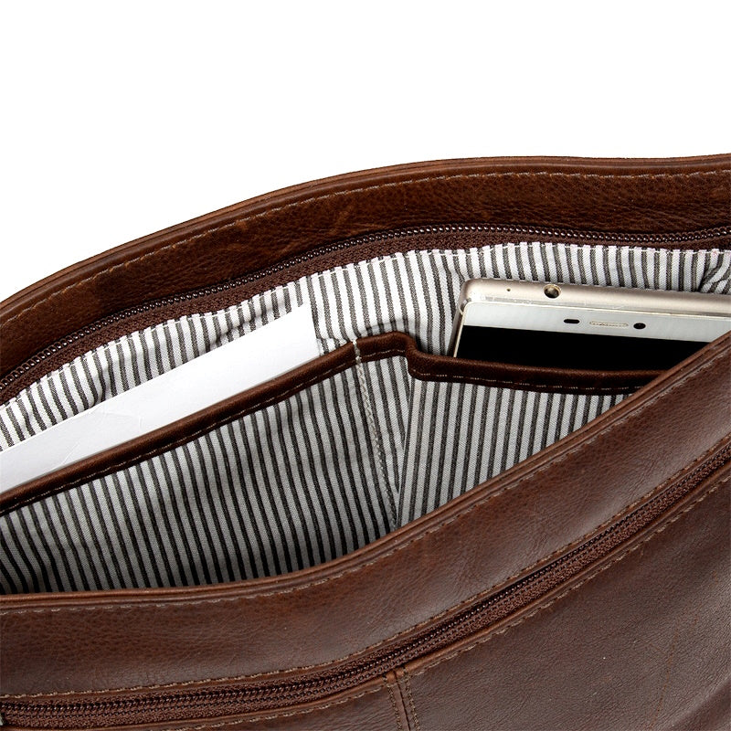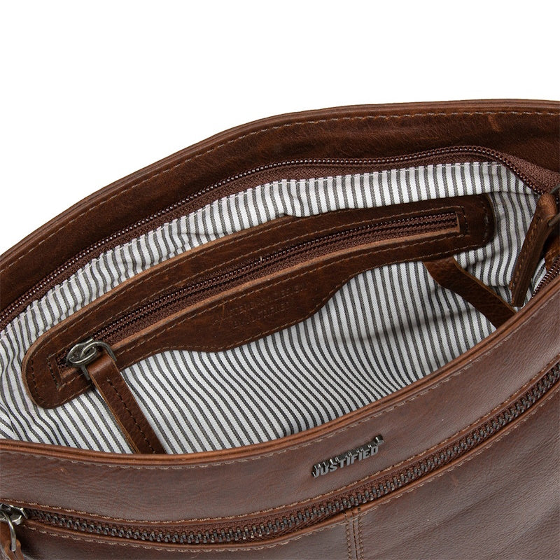 De Crossover Bag uit de Nynke collectie van Justified is een prachtige tas met heel veel praktische opbergmogelijkheden. De tas is vervaardigd uit hoogwaardig pullup leer en dit zorgt voor een nette, maar tegelijk ook een stoere look. Het hoofdvak sluit met een rits en is intern voorzien van een rits-, een steek en een telefoonvak. Ook bevindt zich een LED-lampje aan een leren koord om de inhoud van de tas goed te kunnen zien. Dankzij de schouderband kan de tas prettig over de schouders of crossbody worden gedragen. Deze tas is dus perfect om al uw persoonlijke eigendommen zoals uw telefoon, portemonnee, sleutelbos en andere essentiels in op te bergen!
